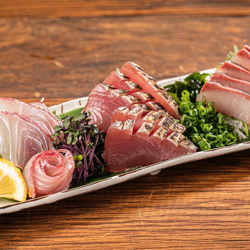 毎日仕入れる鮮魚の「刺盛三点盛」や芝浦直送のホルモンは必食の一品!